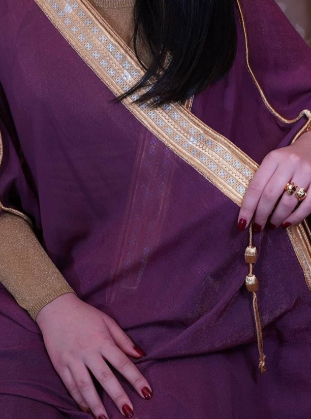 Al Malika abaya ,bisht Style, with silk ,pearl and floral embroidery