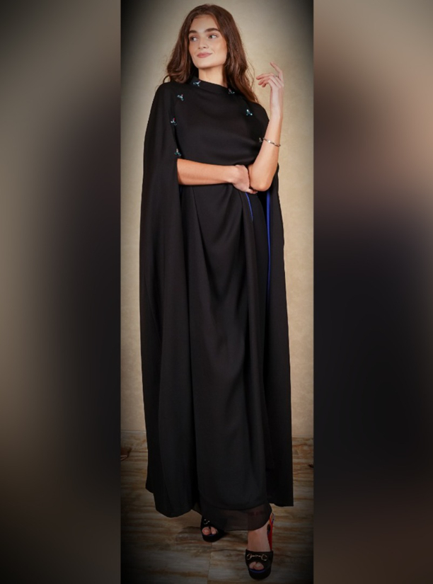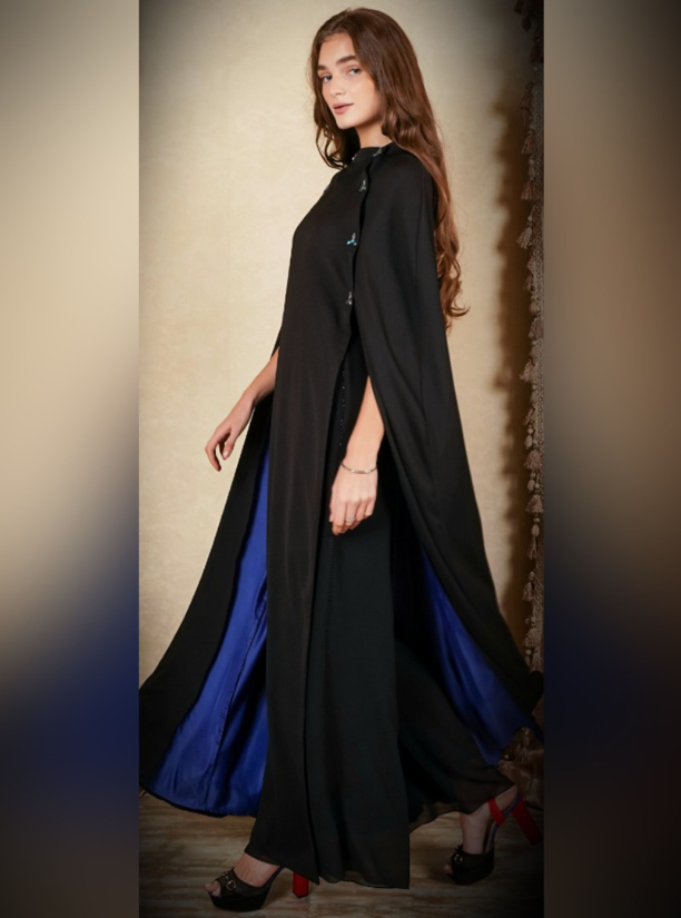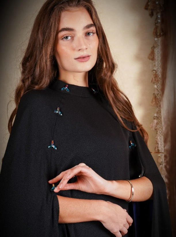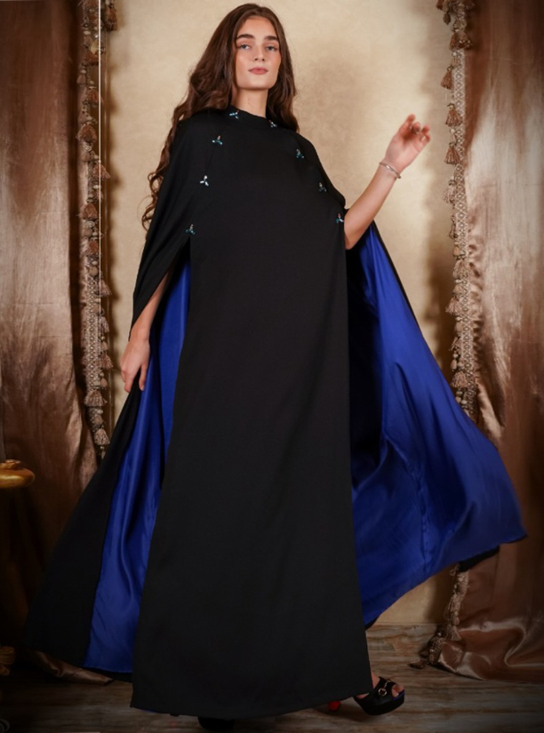 Cape black abaya with colourfull Swarovski