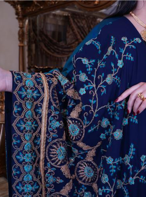 wavy and turquoise Bisht with golden Embroidery, Bisht style.